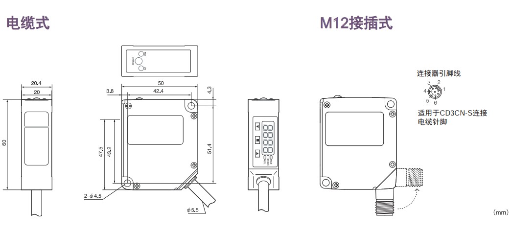 激光位移傳感器CD3系列外型尺寸: 點(diǎn)擊圖片放大(單位:mm)