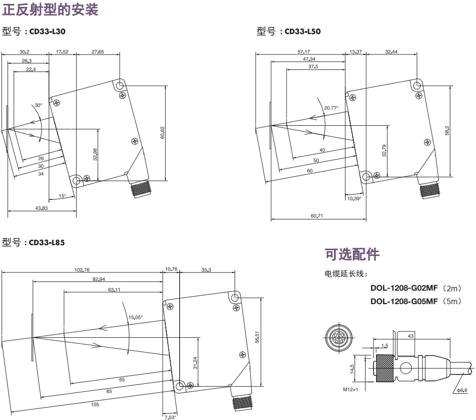 激光位移傳感器CD33系列外型尺寸: