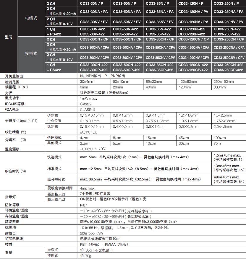 激光位移傳感器CD33系列技術(shù)參數(shù):
