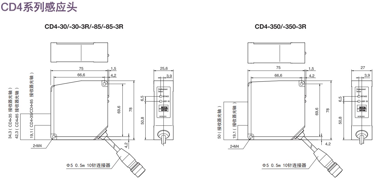 激光位移傳感器CD4系列外型尺寸: