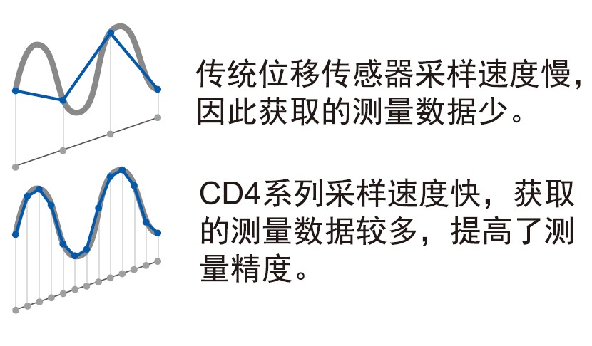 CD4位移傳感器的采樣周期為100μsec,高速采樣,采取更多的測(cè)量數(shù)據(jù),從而獲取準(zhǔn)確的線性圖像。