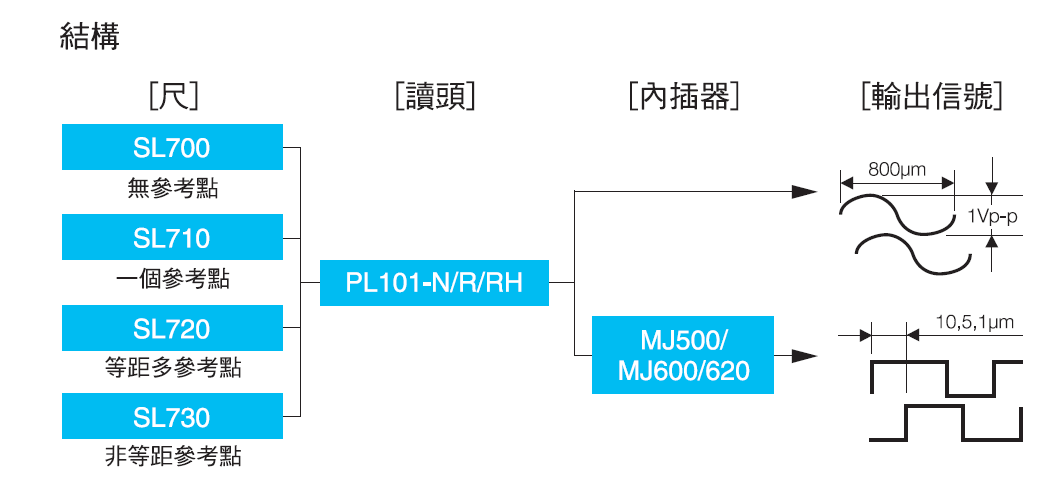 直線位移檢測(cè),當(dāng)連接PL101讀磁頭及MJ500/600/620系列轉(zhuǎn)換器時(shí)(兩者均單獨(dú)出售),